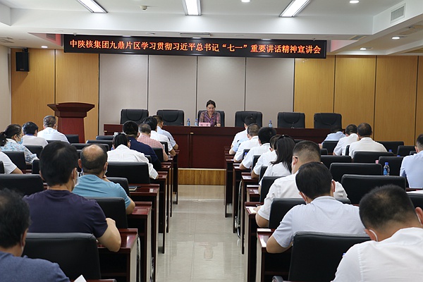8月3日,中陜核集團公司學習貫徹習近平總書記“七一”重要講話精神宣講團第七宣講組到九鼎片區進行宣講。宣講組長集團黨委委員、紀委書記、省監委駐集團公司監察專員楊霞作宣講報告,宣講組成員集團公司紀委、監察專員辦公室綜合室主任趙明學主持會議。二一四大隊、二一八大隊、宜威公司和健康產業四家單位的領導班子及黨員干部共50余人參會。