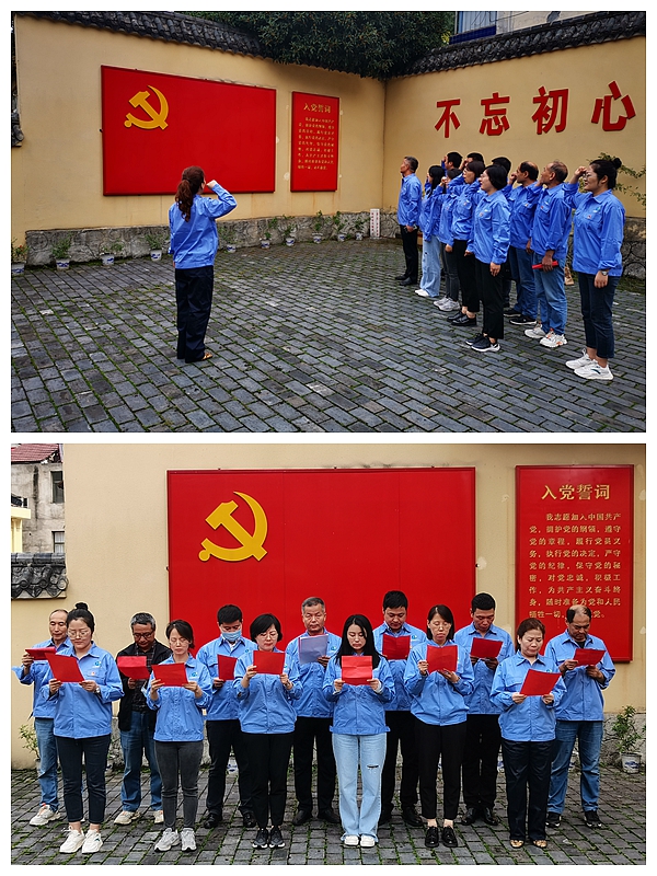 小廣場黨旗下,在支部書記龍智湘的帶領下,同志們舉起右手,握緊拳頭,莊嚴宣誓為共產(chǎn)主義事業(yè)奮斗終身,為實現(xiàn)中華民族的偉大復興而努力奮斗,重溫入黨誓詞。隨后,集體詩歌朗誦《黨旗下》,所有人員精神抖擻、全神貫注,用抑揚頓挫的聲音和激情昂揚的語氣認真誦讀每字每句,訴說著我們永遠不變的莊嚴誓言。
