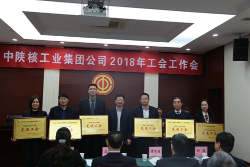 3月20日,中陜核工業集團公司召開了2018年工會工作會議,會上,公司被集團授予2016-2017年度“先進工會”稱號、授予龍智湘“工會優秀工會干部”稱號、授予張文斌、段玉堅“工會活動積極分子”稱號的表彰。