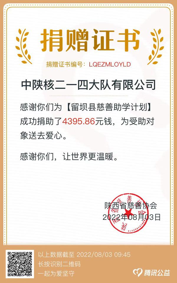 本次活動的幫扶對象是集團定點幫扶的留壩縣慈善協會策劃“留壩縣慈善助學計劃”項目,善款極大助力留壩縣貧困學子完成學業,實現大學夢的美好夙愿。