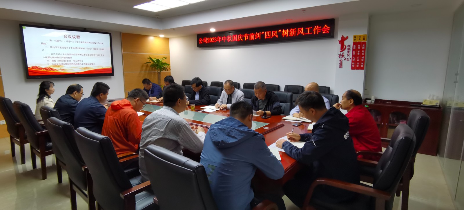 會議首先學習第一議題《習近平關(guān)于黨風廉政建設(shè)和反腐敗斗爭論述摘編》部門內(nèi)容;傳達學習了省紀委關(guān)于《中秋國慶期間糾“四風”樹新風工作提示》的通知文件,通報了中、省紀委監(jiān)委節(jié)前發(fā)布的關(guān)于違反中央八項規(guī)定精神問題典型案例;集中觀看了廉政教育片《清除國企蛀蟲》—“靠企吃企”典型案件警示錄;安排部署了公司中秋國慶期間糾“四風”樹新風相關(guān)工作及要求。