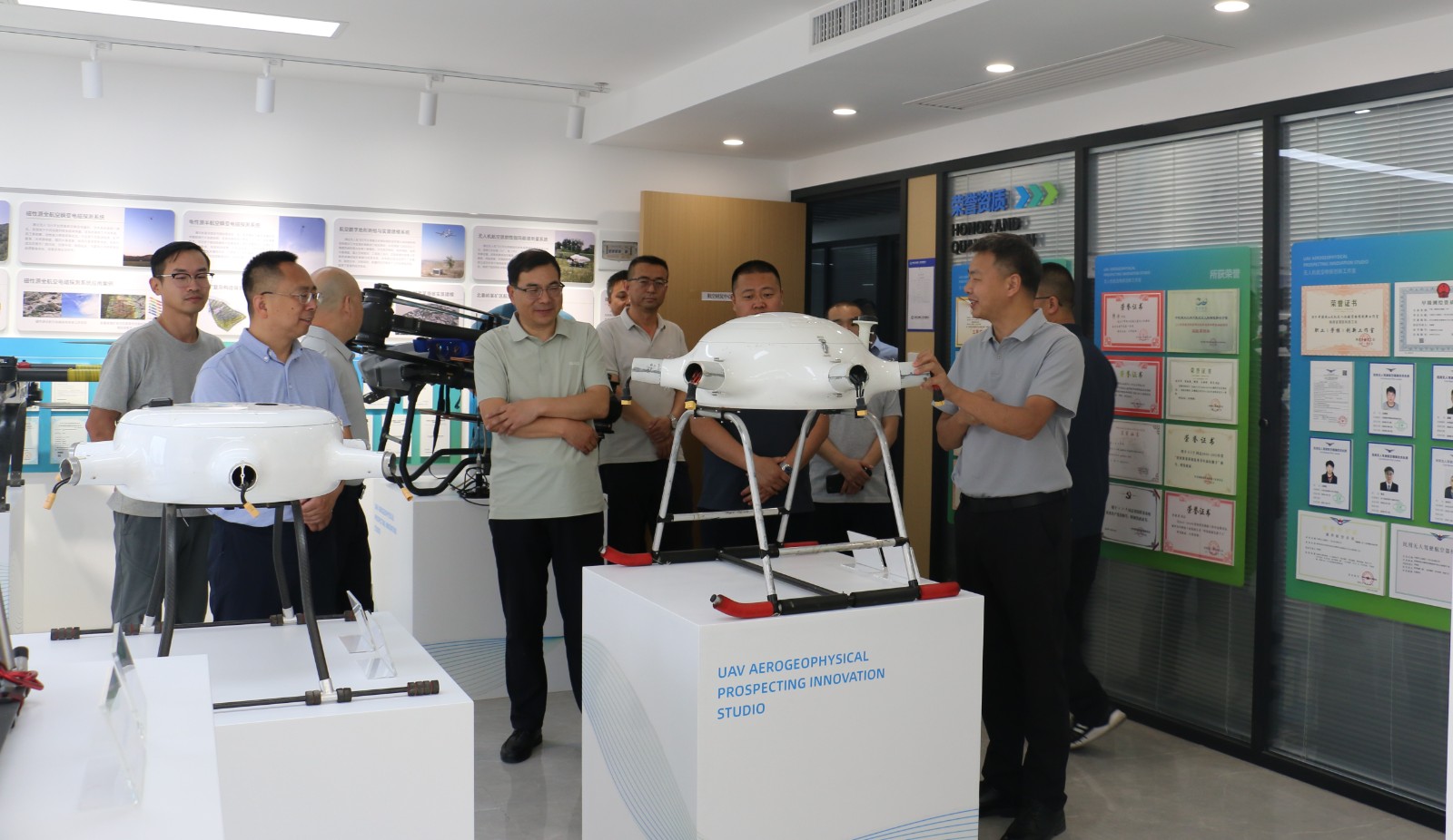 會后,劉世海一行參觀調研公司無人機航空物探創新工作室。