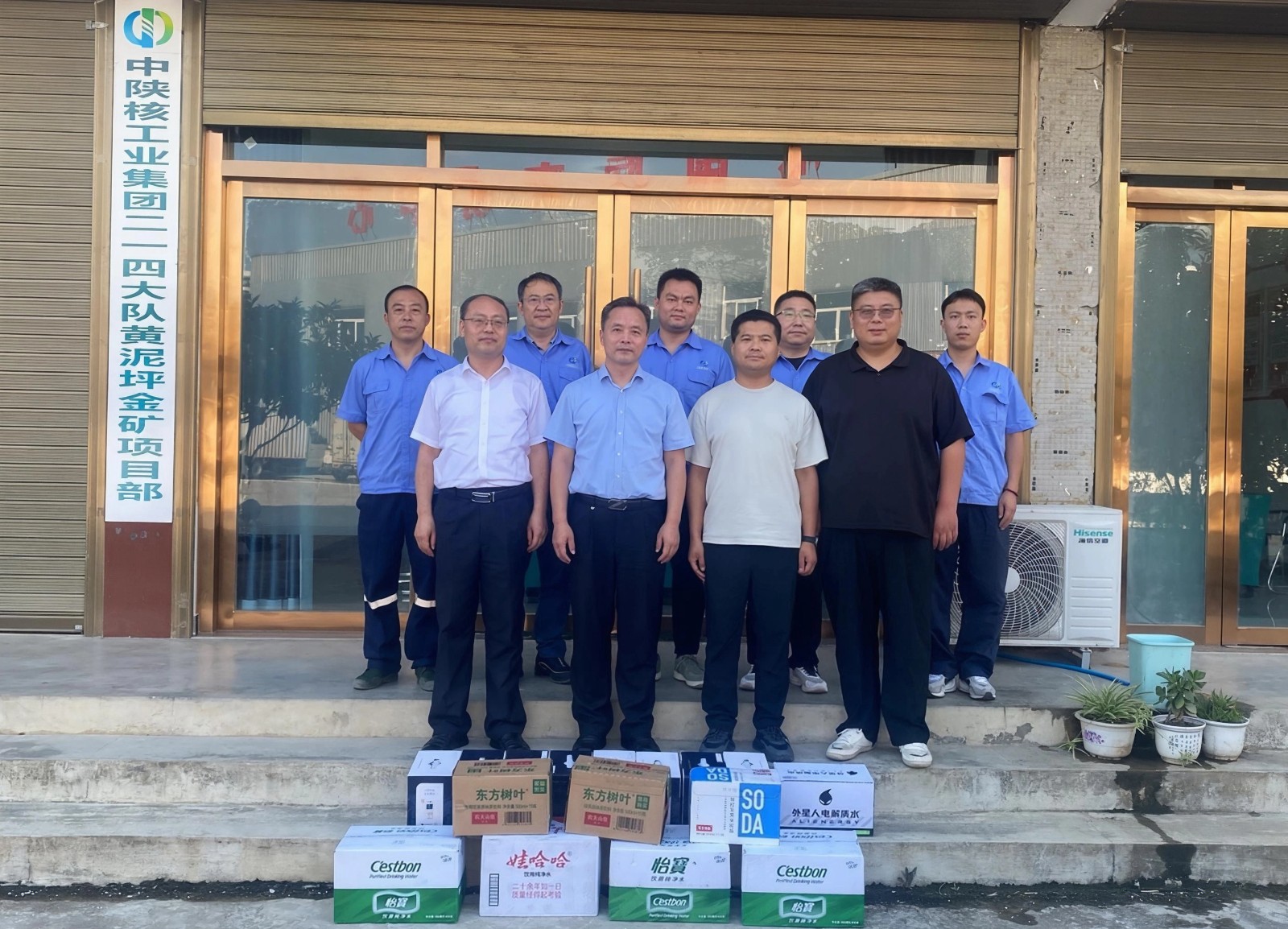 近日,陜西地區(qū)持續(xù)高溫,野外作業(yè)面臨嚴(yán)峻“烤”驗(yàn),中陜核集團(tuán)黨委副書記馮凱、宣傳部部長(zhǎng)張昆峰一行先后深入二一四隊(duì)寧強(qiáng)縣黃泥坪地區(qū)金礦詳查項(xiàng)目組和西鄉(xiāng)縣蔡家梁地區(qū)金礦詳查項(xiàng)目組開展“野外送清涼”慰問活動(dòng),為在高溫下奮戰(zhàn)的一線職工送去防暑降溫物資和集團(tuán)公司的深切關(guān)懷。