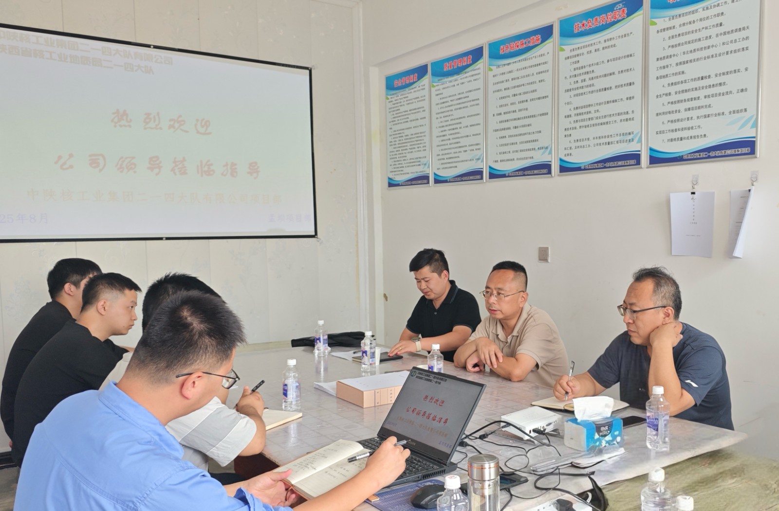 慰問(wèn)結(jié)束后,付星一行與項(xiàng)目部人員召開(kāi)座談會(huì)。會(huì)上,付星宣講了公司改革的核心政策,詳細(xì)闡述了公司未來(lái)的戰(zhàn)略規(guī)劃和發(fā)展方向,鼓勵(lì)項(xiàng)目部全體人員把握發(fā)展機(jī)遇,在實(shí)干中實(shí)現(xiàn)個(gè)人與企業(yè)的共同成長(zhǎng)。隨后,項(xiàng)目部負(fù)責(zé)人從項(xiàng)目進(jìn)度、人員培訓(xùn)、安全生產(chǎn)、質(zhì)量管控等方面作了詳細(xì)匯報(bào)。付星對(duì)項(xiàng)目部前期工作取得的成效給予了充分肯定,同時(shí)針對(duì)項(xiàng)目當(dāng)前面臨的問(wèn)題和挑戰(zhàn)提出了指導(dǎo)意見(jiàn):一是以精益化管理為目標(biāo),完善項(xiàng)目部的建設(shè);二是要細(xì)化工作,完成各個(gè)工作步驟的流程圖;三是以成果為導(dǎo)向,推進(jìn)項(xiàng)目進(jìn)展。