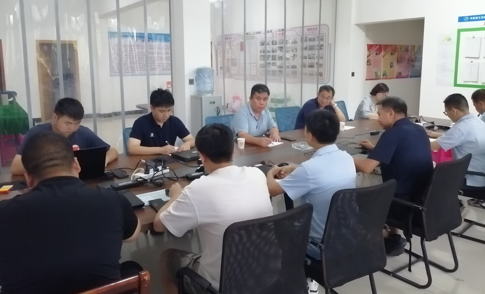 抵達項目部后,王朋一行首先深入了解野外一線職工的工作生活情況,反復叮囑大家要做好防暑降溫工作,合理安排作業時間,確保身心健康,同時代表公司給項目人員送上了大米、水果、牛奶等慰問品,將企業的深切關懷切實傳遞到每一位一線工作者心中。隨后,與項目部人員召開座談會,王朋認真聽取了項目負責關于陜南大地質項目整體進展、階段性成果、下一步工作計劃以及資金回收等重點工作情況的匯報,并針對項目推進中的難點問題與參會人員展開深入交流。