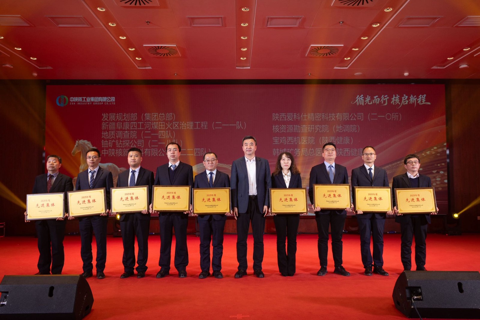 一元復(fù)始啟新篇,捷報頻傳鼓干勁。1月20日,中陜核工業(yè)集團三屆三次會員(職工)代表大會暨2026年工作會隆重召開,會上對過去一年在集團發(fā)展中表現(xiàn)突出的先進集體與個人進行了表彰。中陜核二一四隊憑借扎實的工作成效與亮眼的創(chuàng)新突破,斬獲多項榮譽,盡顯核地質(zhì)隊伍的硬核實力與奮進姿態(tài)。