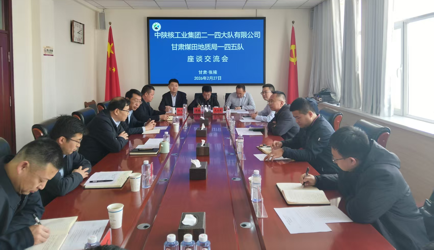 2026年2月27日,中陜核工業集團二一四大隊有限公司黨委書記、董事長付星一行,赴甘肅煤田地質局一四五隊座談交流。雙方圍繞深化新興業務協同發展、拓展合作領域等方面進行了深入的交流。甘肅煤田地質局一四五隊黨委書記、隊長劉世海參加座談。