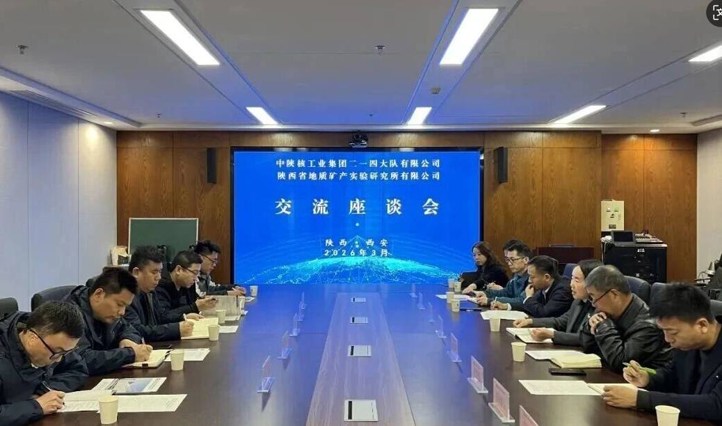 3月2日下午,中陜核工業集團二一四大隊有限公司黨委委員、總經理王朋一行前往陜西地礦研究所開展座談交流,雙方圍繞業務合作、技術攻關等議題開展座談。陜西地礦研究所黨委書記、董事長、總經理周桂紅參加座談。