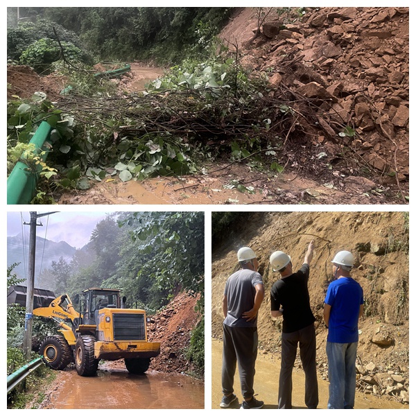 接到險情后,公司領導高度重視,組織相關技術人員趕赴現場查看災情,迅速做出搶修措施,并調動各種應急設備、組織道路搶修人員迅速奔赴現場,爭分奪秒,搶險清障。在清障過程中,現場人員第一時間在水毀路段設立警示牌、放置安全錐、拉起警戒線、設置隔離區,對該路段實行交通管制,及時通過微信、公告等發布交通中斷情況信息,向周邊群眾提供了繞行方案。同時組織人力對路面落石、積水、泥沙及影響車輛通行的斷樹進行及時清理,積極調集搶險機械對路面塌方和阻塞的邊溝進行清堵。經過與地方相關部門的密切配合,僅用2個小時,搶險人員就完成了道路清障,及時保障了周邊群眾出行安全,同時也確保公司正常生產。