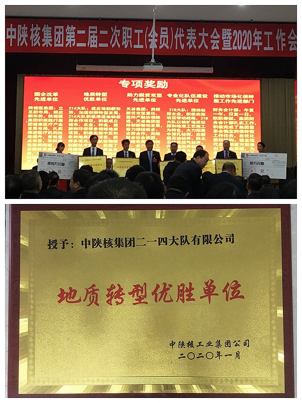 2020年1月9日,在中陜核集團2020年工作會上,公司喜獲集團“地質轉型優勝單位”榮譽稱號。