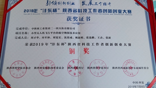 公司航空物探項目獲2019年“灃東杯”陜西省科技工作者創(chuàng)新創(chuàng)業(yè)大賽銅獎