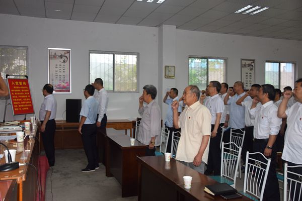 會議舉行了“我是光榮的共產(chǎn)黨員”集中宣誓儀式,在黨群工作部長華崢領(lǐng)誓下,全體黨員和3位新黨員同志高舉右手面對鮮紅的黨旗莊嚴(yán)宣誓,老黨員重溫入黨誓詞,新黨員代表穆偉做了表態(tài)發(fā)言。