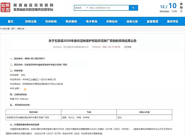 10月11日,陜西省政府采購(gòu)網(wǎng)公示,公司成功中標(biāo)石泉縣2020年秦嶺濕地保護(hù)恢復(fù)示范推廣項(xiàng)目。